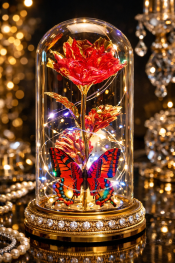 🌹 Луксозна вечна роза в стъклен купол с LED светлини