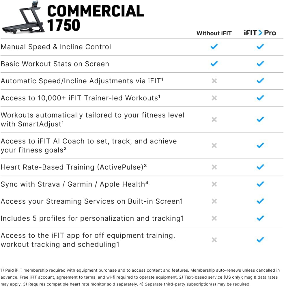 The treadmill includes built-in manual modes and pre-set programs that work without a subscription. You can choose to add iFit for interactive trainer-led workouts, but it is not required for the machine to function.